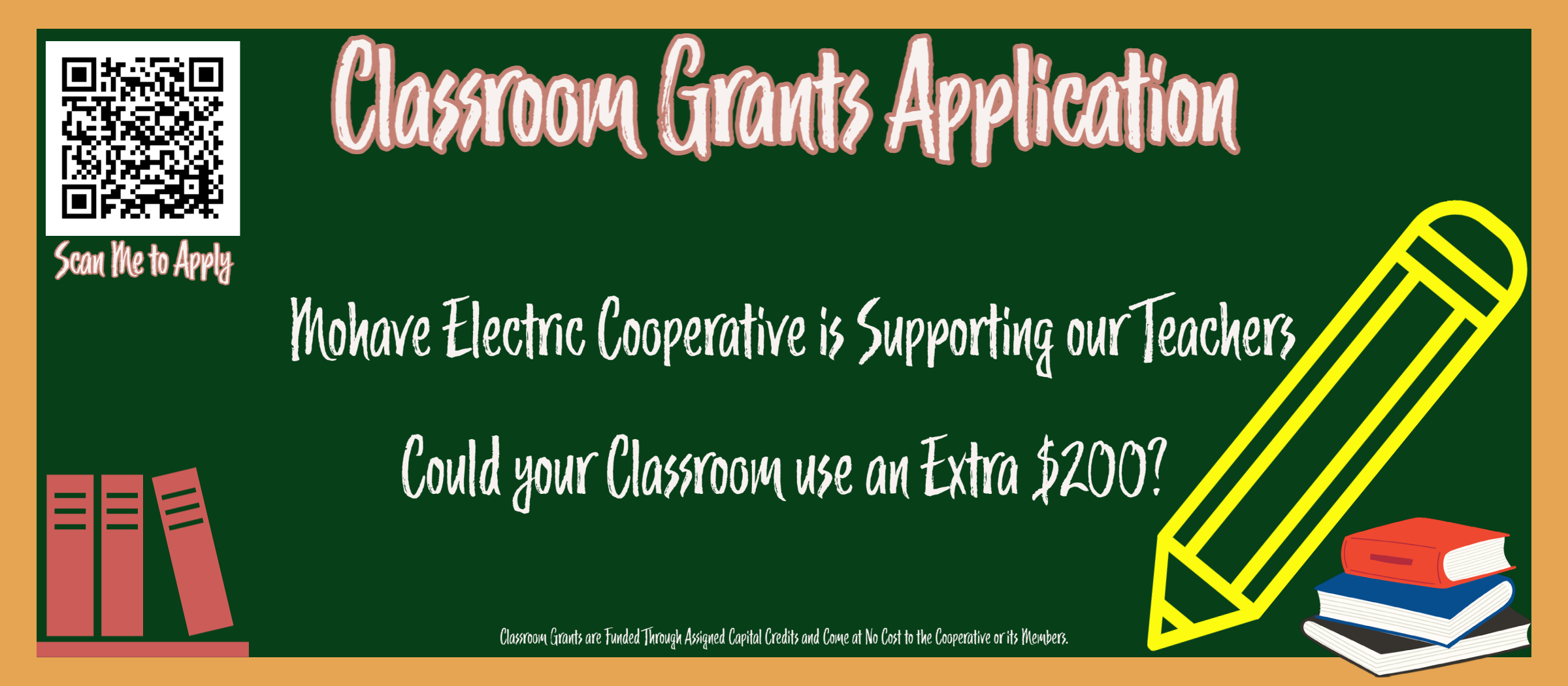 Bullhead City, AZ – Mohave Electric Cooperative (MEC) awarded eighteen $200 classroom grants to educators for financial assistance in making classroom learning more engaging. Thirty-two applications were received for the eighteen available grants. A team at MEC evaluated the projects submitted by educators basing their grading on creativity, following application instructions, classroom integration, as well […]