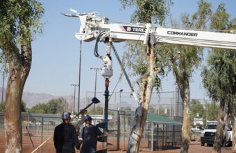 Together, TWN Communications, Arizona Electric Power Cooperative, Mohave Electric Cooperative, CEO Tyler Carlson, and MEC employees donated nearly $50,000 for new poles for the fields and playground, and to remove the old lights and install the new lighting systems.