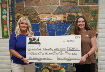 Bullhead City, AZ – Mohave Electric Cooperative (MEC) has awarded the 2023 Education Grant as a continuing show of support for renewable energy education. MEC is proud to support local educators’ efforts in going the extra mile by using innovative ideas to help local youth learn sustainable concepts. The SunWatts Education Grant program is part of MEC’s commitment to our community and is funded through REST (Renewable Energy Standard Tariff) program. Funds from the grant will be used to teach students about sustainability through curriculums designed and implemented by the grant winners.