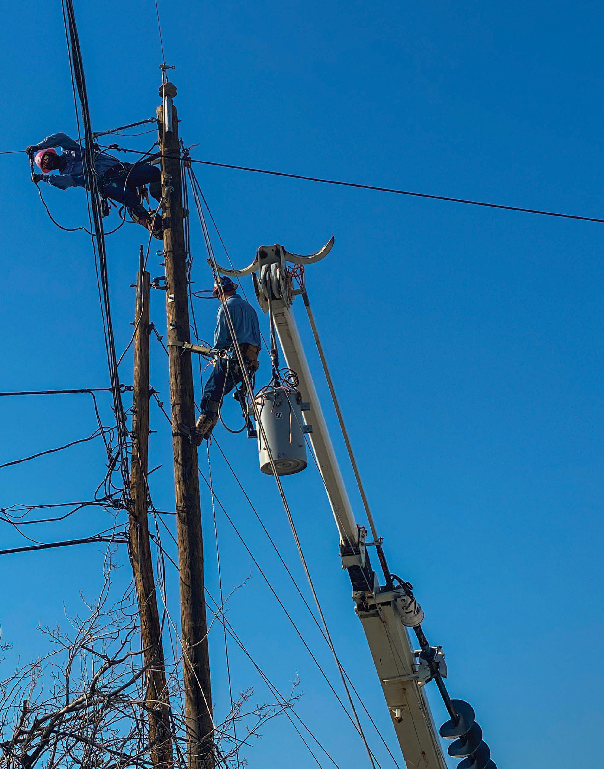 “We make every effort to keep the outage time as short as possible. Hole digging and material preparation are done ahead of time, before the outage and transferring the lines and equipment to the new pole,” says Hardy.