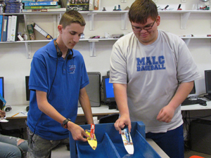 Mark Carlson, a physical science teacher at MALC said, “Thank you Mohave Electric Cooperative. Your classroom grant allowed MALC’s AIMS Prep class to learn the principles of work and energy with a hands-on building project: their own working steamboats.” Carlson said the students made the working boats from recycled materials and simple technology that was used for the typical of turn-of-the-century toy boats. A birthday candle was used for an external combustion heat source that turned water into steam inside an aluminum can engine which was forced through a drinking straw. “The students learned the theories and the practical workings of steam engines, especially when things did not work quite right,” said Carlson. After building the boats, students raced in their custom made boat race track.